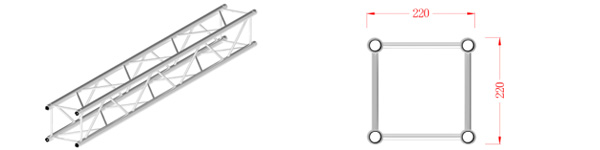 本系列桁架属于小型插销连接式桁架,材料采用6082-T6,外形美观,体积较小,承载能力较强,自身重量较轻,安装方便等优点。使用于各种展会 小型演出等不同场合。我们有三种不同连接方式供客户选择:套筒连接方式,螺丝连接方式及M头连接方式。可根据客户要求定做不规则形状。