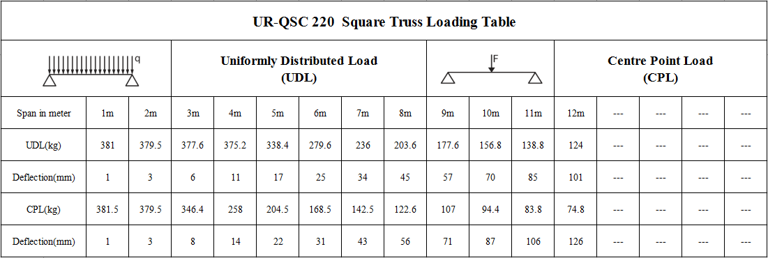 | UR-QSC220-500 | 型材:6082-T6 主管:30*2.0mm 主管:12*1.5mm 斜管:12*1.5mm 套筒:32*50mm | 220*220 | 500 | 1.6 | ||||||||||||