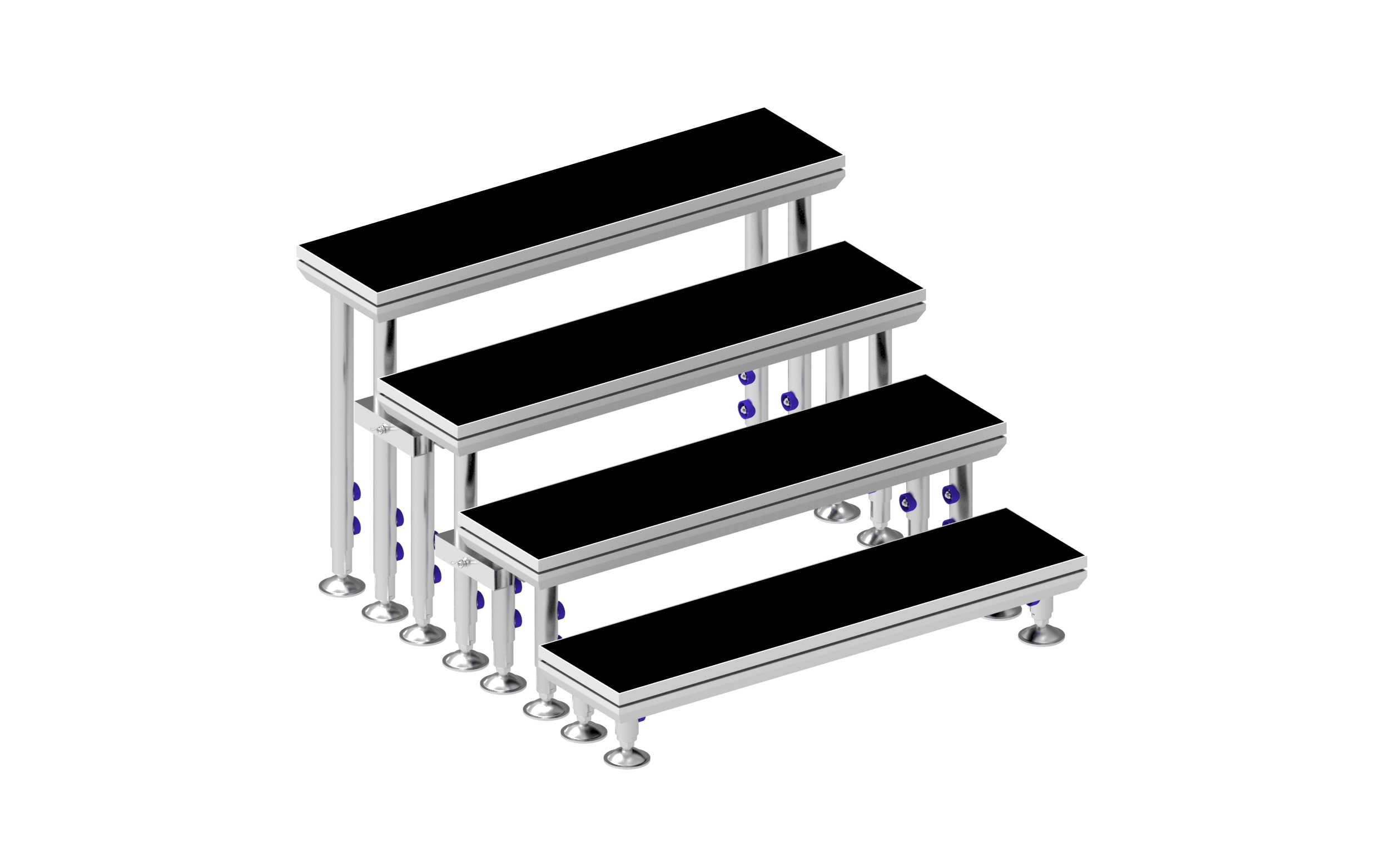 | UR-PS Stairs 1-2 | 铝合金框架 防滑胶合板18mm厚 与1M舞台相匹配 宽度:0.3M | 2 steps |