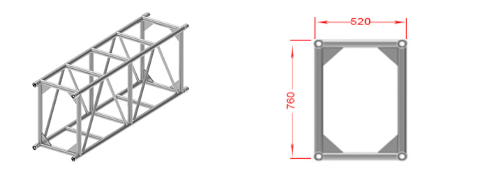 本系列桁架属于大型插销连接式桁架,材料采用6082-T6,外形美观,体积较小,承载能力较强,自身重量较轻,安装方便等优点。使用于各种展会 小型演出等不同场合。我们有三种不同连接方式供客户选择:套筒连接方式,螺丝连接方式及M头连接方式。可根据客户要求定做不规则形状。