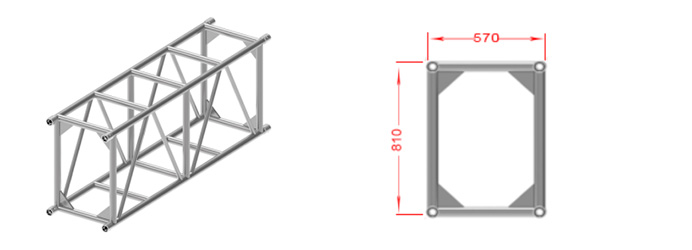 本系列桁架属于大型插销连接式桁架,材料采用6082-T6,外形美观,体积较小,承载能力较强,自身重量较轻,安装方便等优点。使用于各种展会 小型演出等不同场合。我们有三种不同连接方式供客户选择:套筒连接方式,螺丝连接方式及M头连接方式。可根据客户要求定做不规则形状。