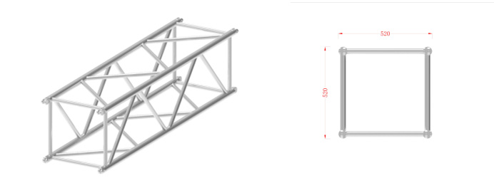 本系列桁架属于中型M头连接式桁架,材料采用6082-T6,外形美观,体积较小,承载能力较强,自身重量较轻,安装方便等优点。使用于各种展会 小型演出等不同场合。我们有三种不同连接方式供客户选择:套筒连接方式,螺丝连接方式及M头连接方式。可根据客户要求定做不规则形状。