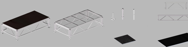 铝合金拆装舞台,此款活动舞台由舞台面,长单片,短单片,立柱,舞台升降管,可调节底座组合而成,每张舞台和相邻的舞台立柱和单片是共用的,所以连接好后,舞台成一个整体,非常牢固。拆装方便,广泛用于舞台表演。 舞台规格可根据客户需要定制配有舞台护栏,楼梯等多种舞台配置,可调节高度一般为0.6m-1m,0.8m-1.4m,1m-1.8m分段调节,台面的选择有:透明PVC板 钢化玻璃 防滑板,夹板厚度:18mm。铝合金舞台楼梯的材质跟舞台材质相同,楼梯的阶梯根据舞台高度来定。也可根据客户需求定做